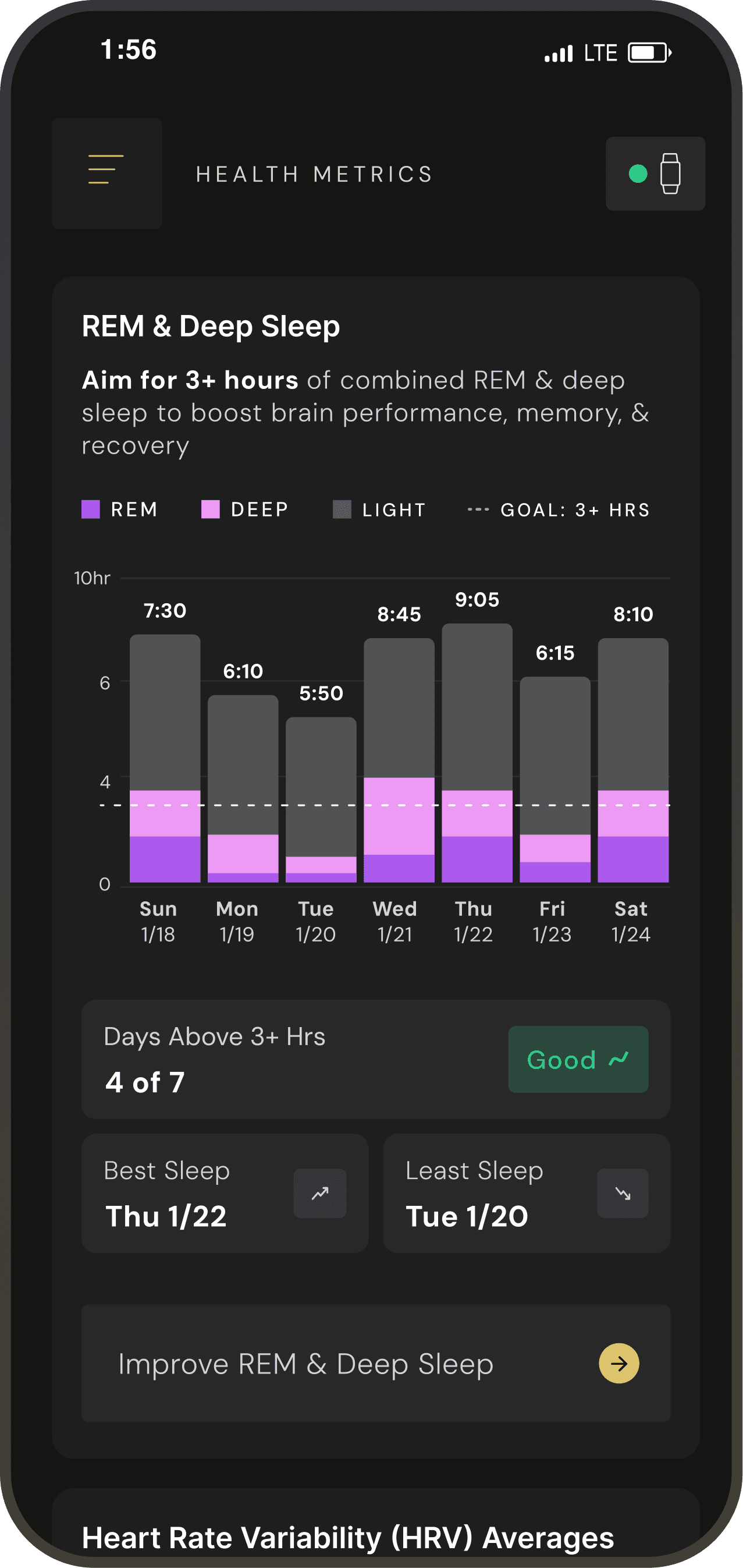 We bring your wearable and glucose data into one place, making it easy to track REM sleep, deep sleep, and HRV for better recovery and long-term health.