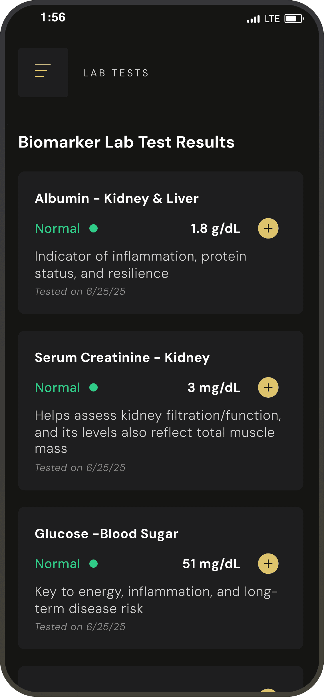 Your biological age reflects how your cells have aged. You may be younger or older than your actual age. It’s based on 9 key biomarkers from your blood test.